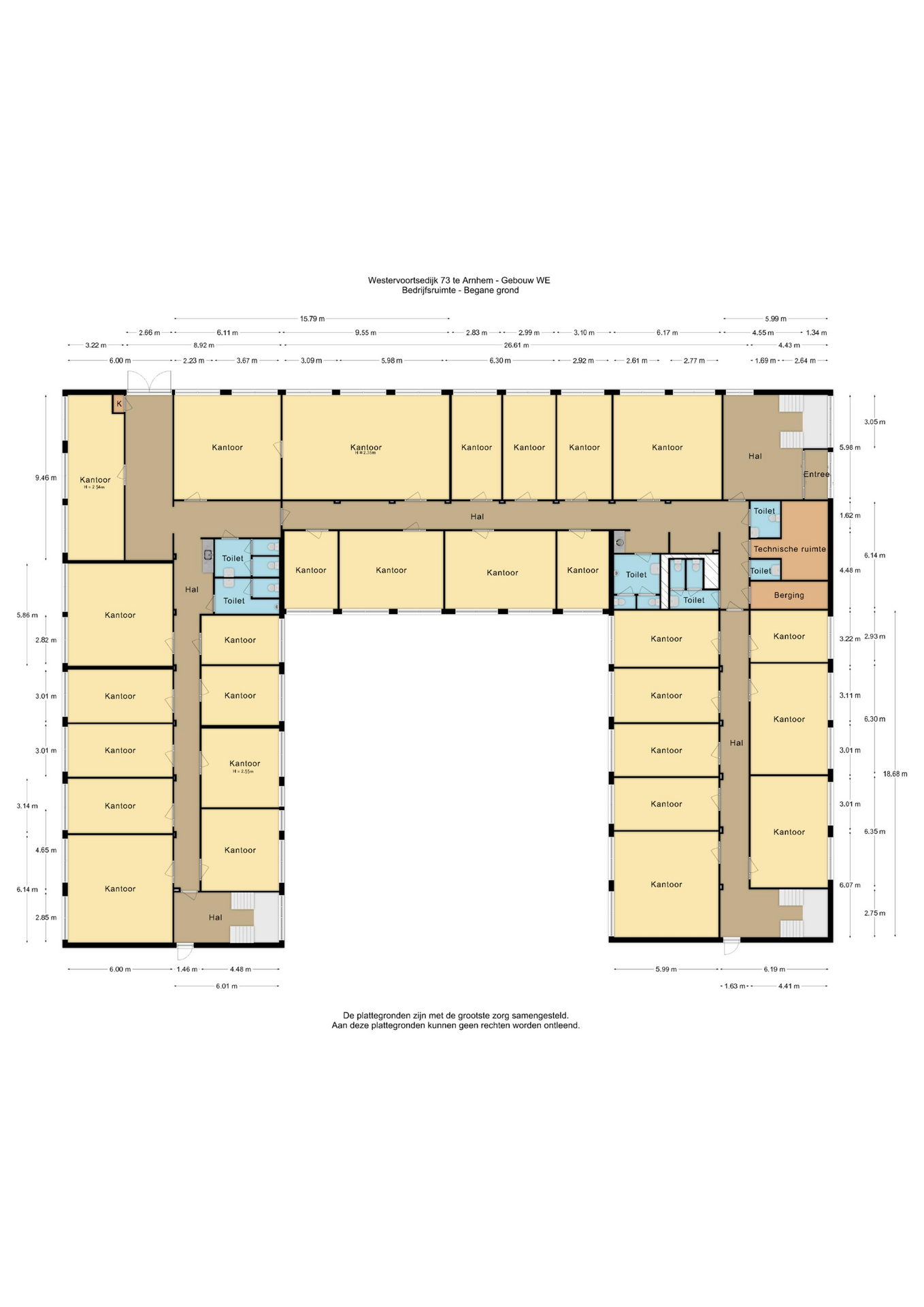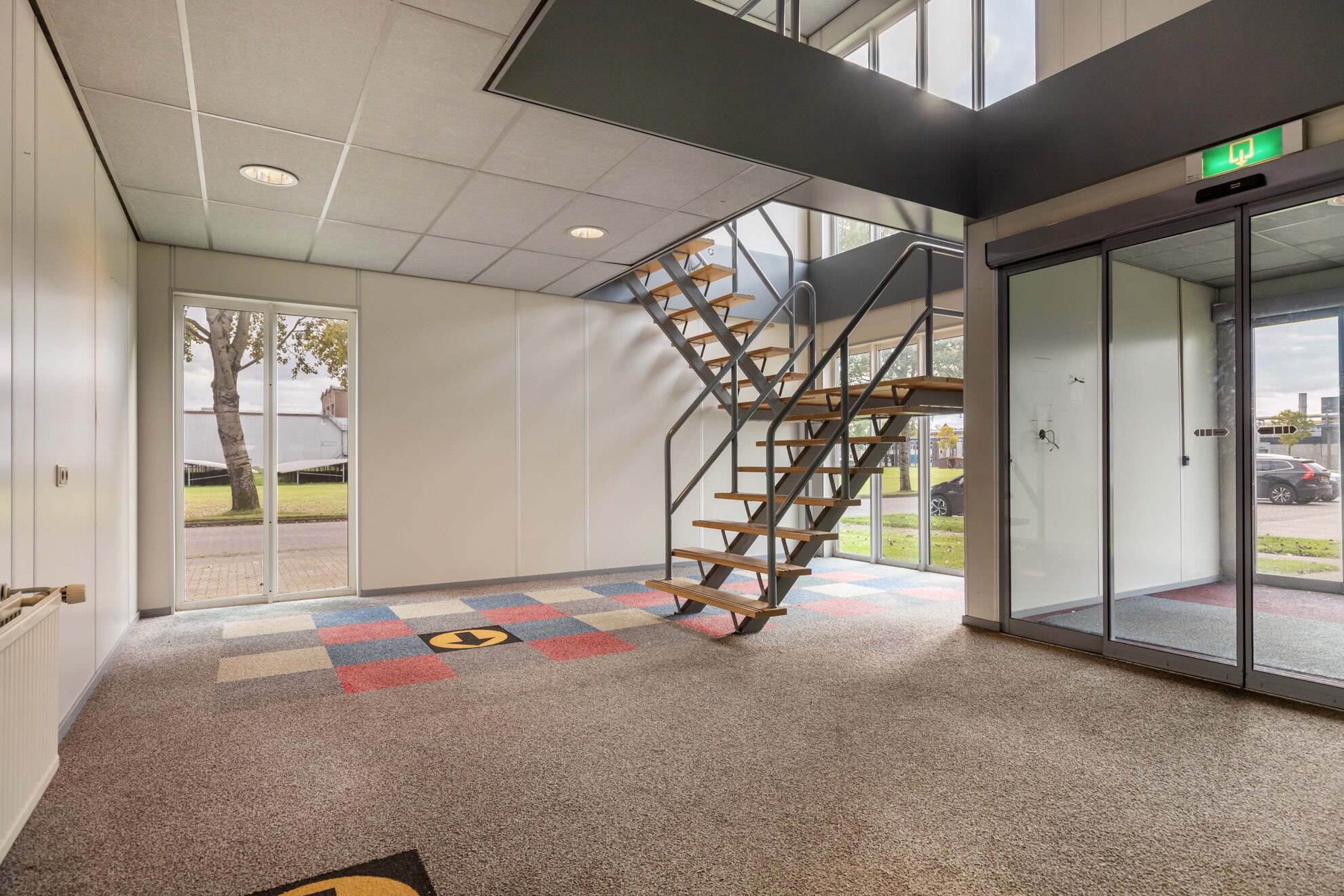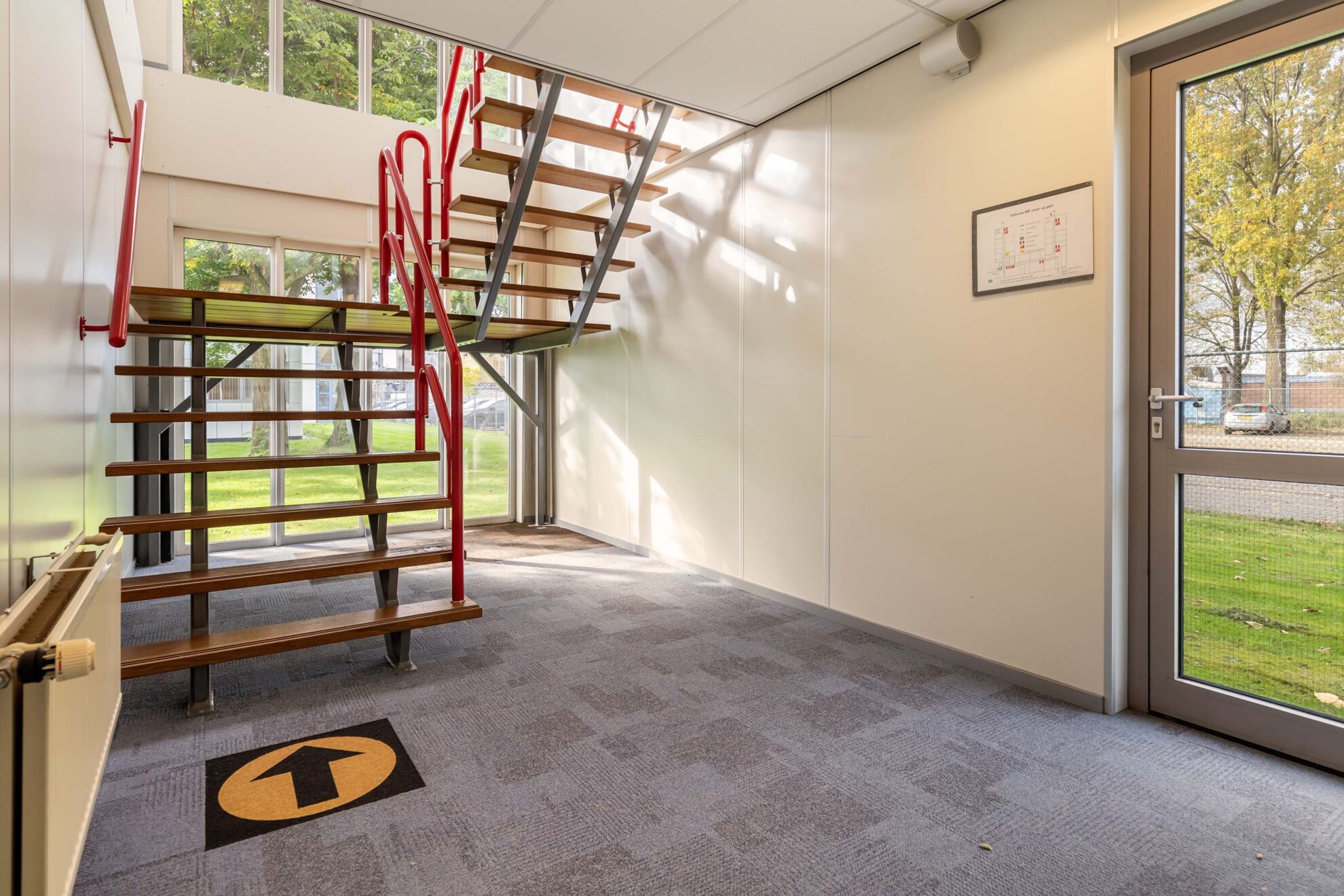 Het gebouw beschikt over drie trappenhuizen en een goederenlift. Op zowel de begane grond als de eerste etage zijn pantry’s aanwezig, evenals verschillende toiletgroepen en een mindervalide toilet. Parkeren is mogelijk in de nabijheid van het pand, en er is ook een laadplein voor elektrische auto’s in de buurt. Het gebouw wordt in de huidige staat opgeleverd.