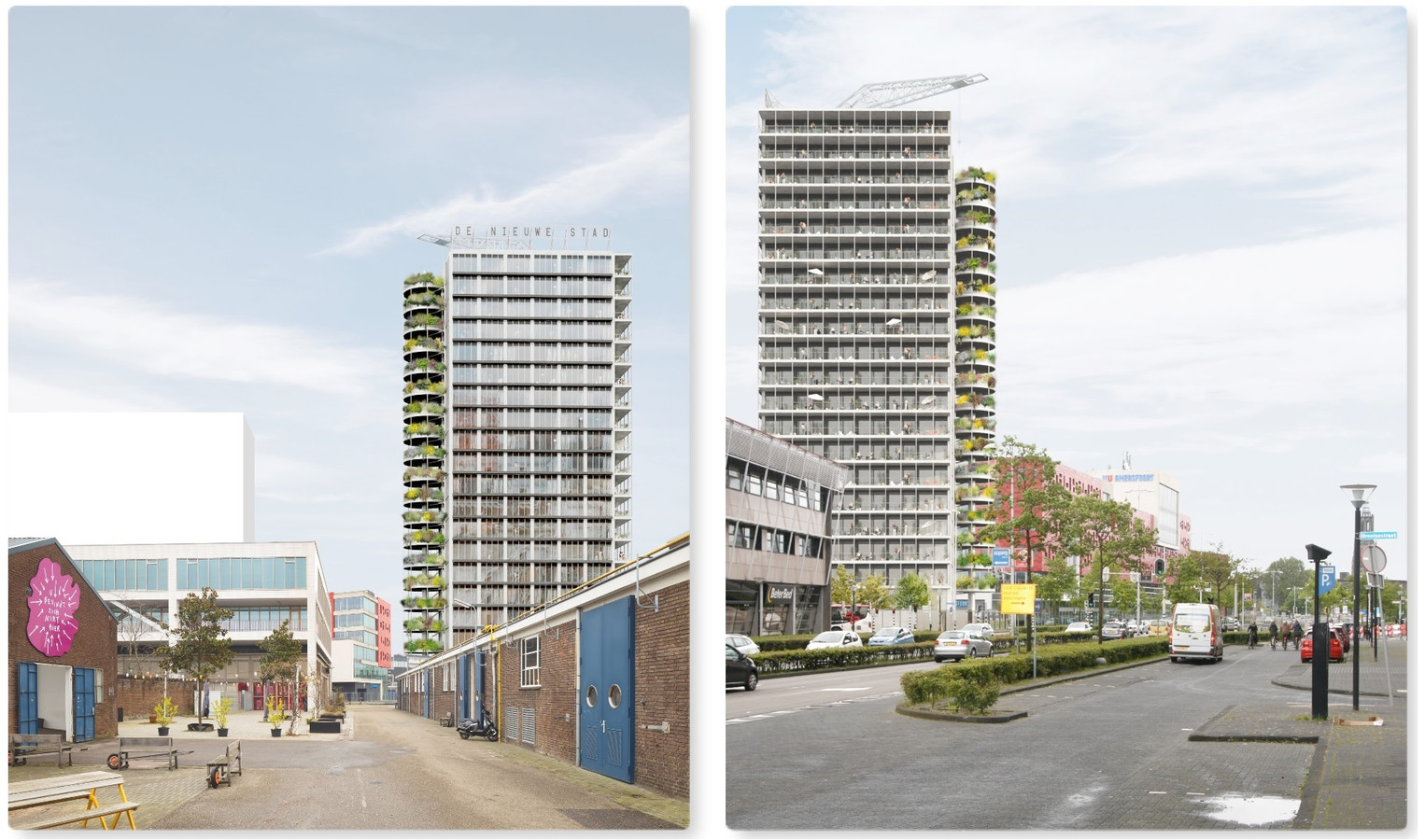 “Dit is dé nieuwe unieke wijk in Amersfoort: 70 meter hoge woontorens, 850 woningen, erfgoed én bedrijven”, kopt het AD Amersfoort