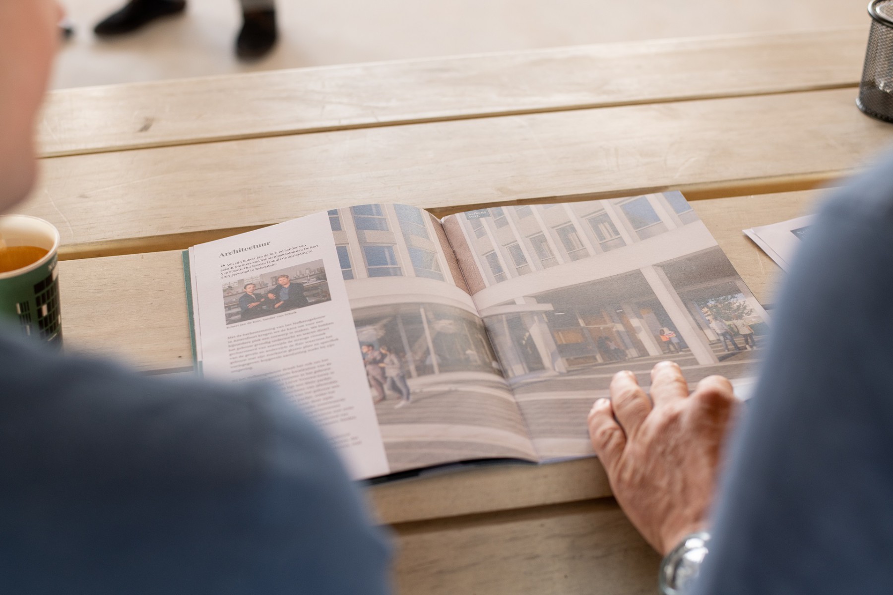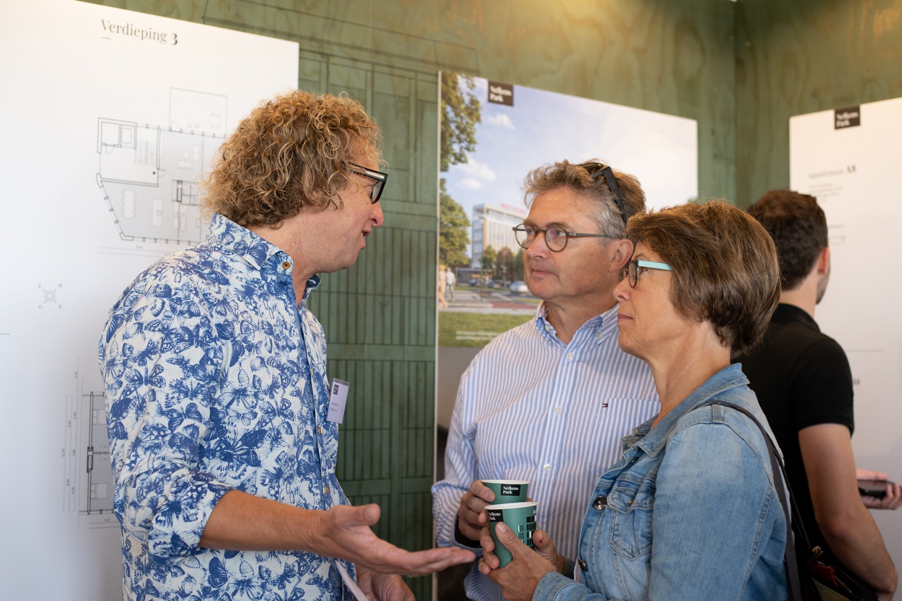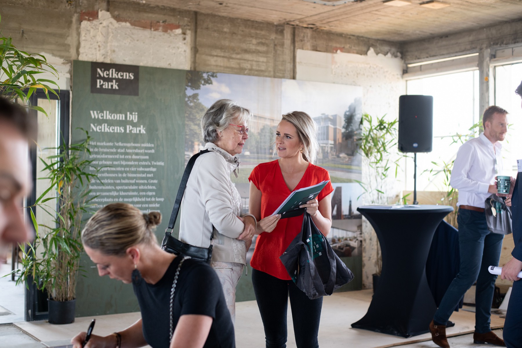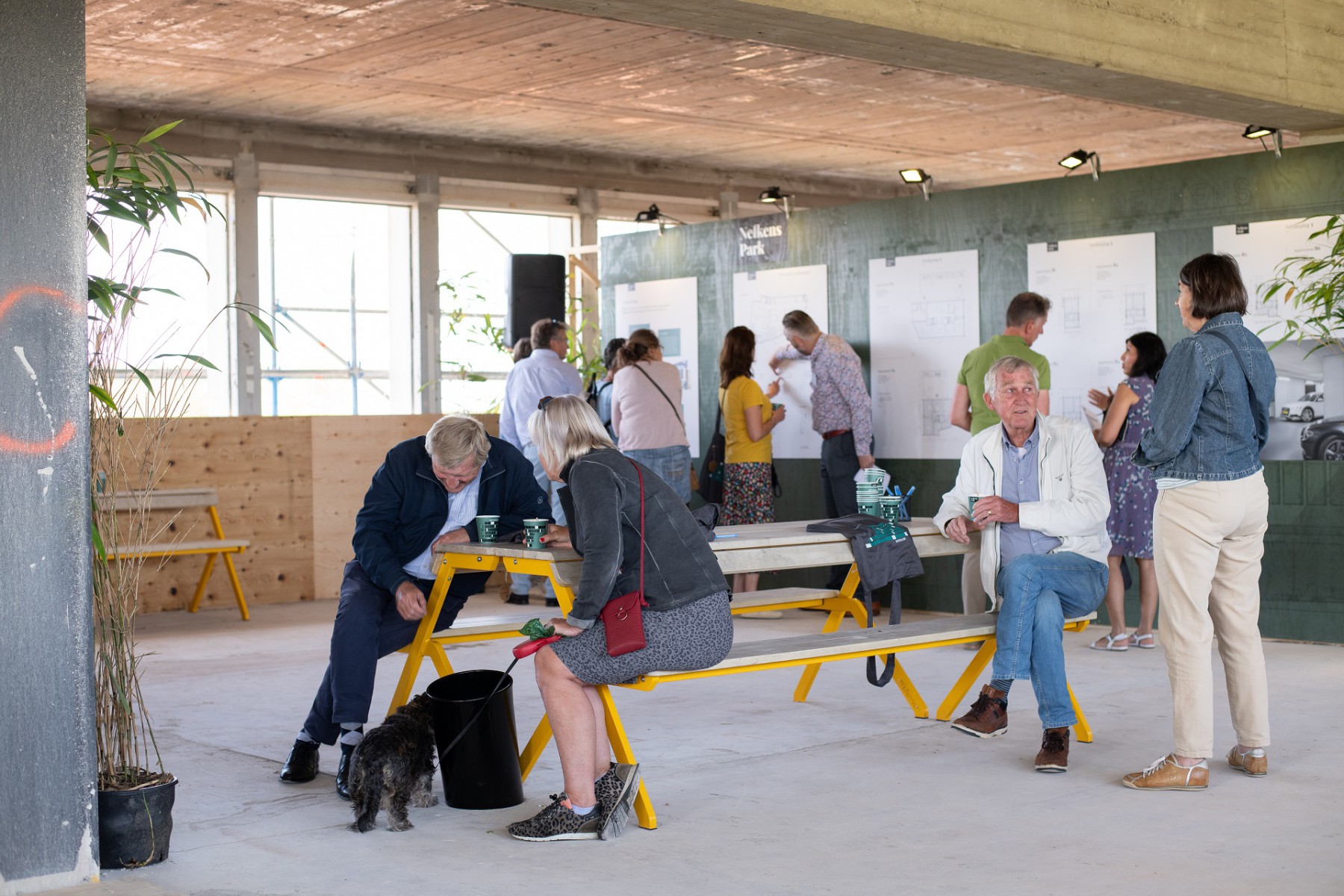 Het waaide lekker door op de vierde verdieping van het Nefkensgebouw, dat nu nog een bouwplaats is. Geen afwerking, geen ramen, maar met veel charme en het prachtige uitzicht was het toch een hele prettige plek om te vertoeven. Het was gezellig druk, de koffies en brownies werden enthousiast ontvangen en er werden veel – heel veel – vragen gesteld.