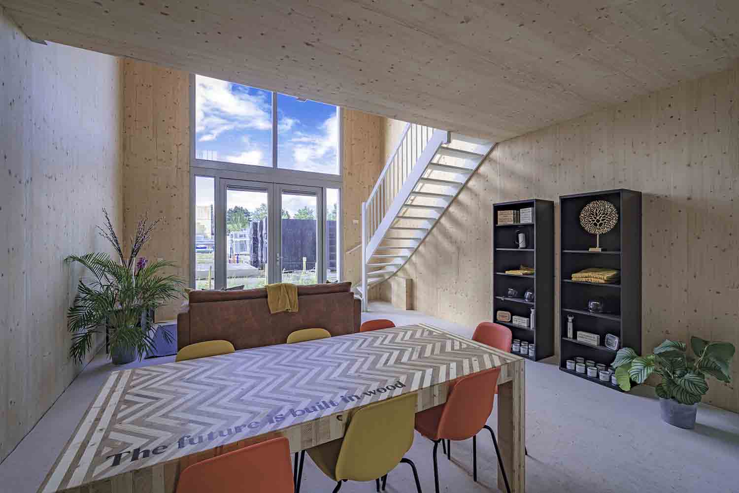 Voor de eengezinswoningen en de urban villa is gekozen voor het duurzame bouwmateriaal CLT. Cross Laminated Timber, oftewel kruislaags hout. Het heet zo omdat de houten latten kruislaags op elkaar worden gelijmd, waardoor een stevig bouwmateriaal ontstaat. Het is veel beter voor het milieu dan de traditionele betonbouw, door minder CO2-uitstoot, minder vrachtverkeer en veel snellere bouw.