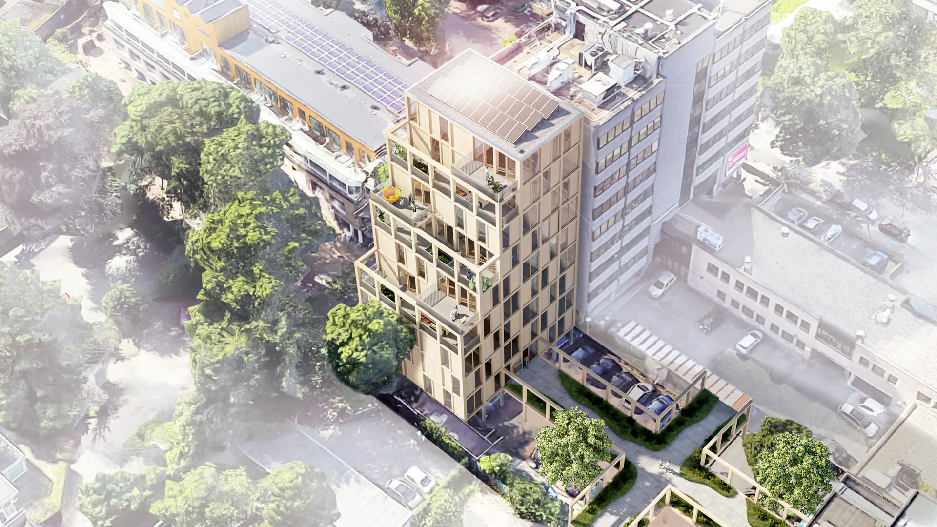 De Zonnehof – tegen de Amersfoortse binnenstad aan – zal de komende jaren ontwikkeld worden tot een woon- en werkgebied met een eigen karakter. Schipper Bosch maakte een plan voor een woontoren achter sportschool LifeCity.