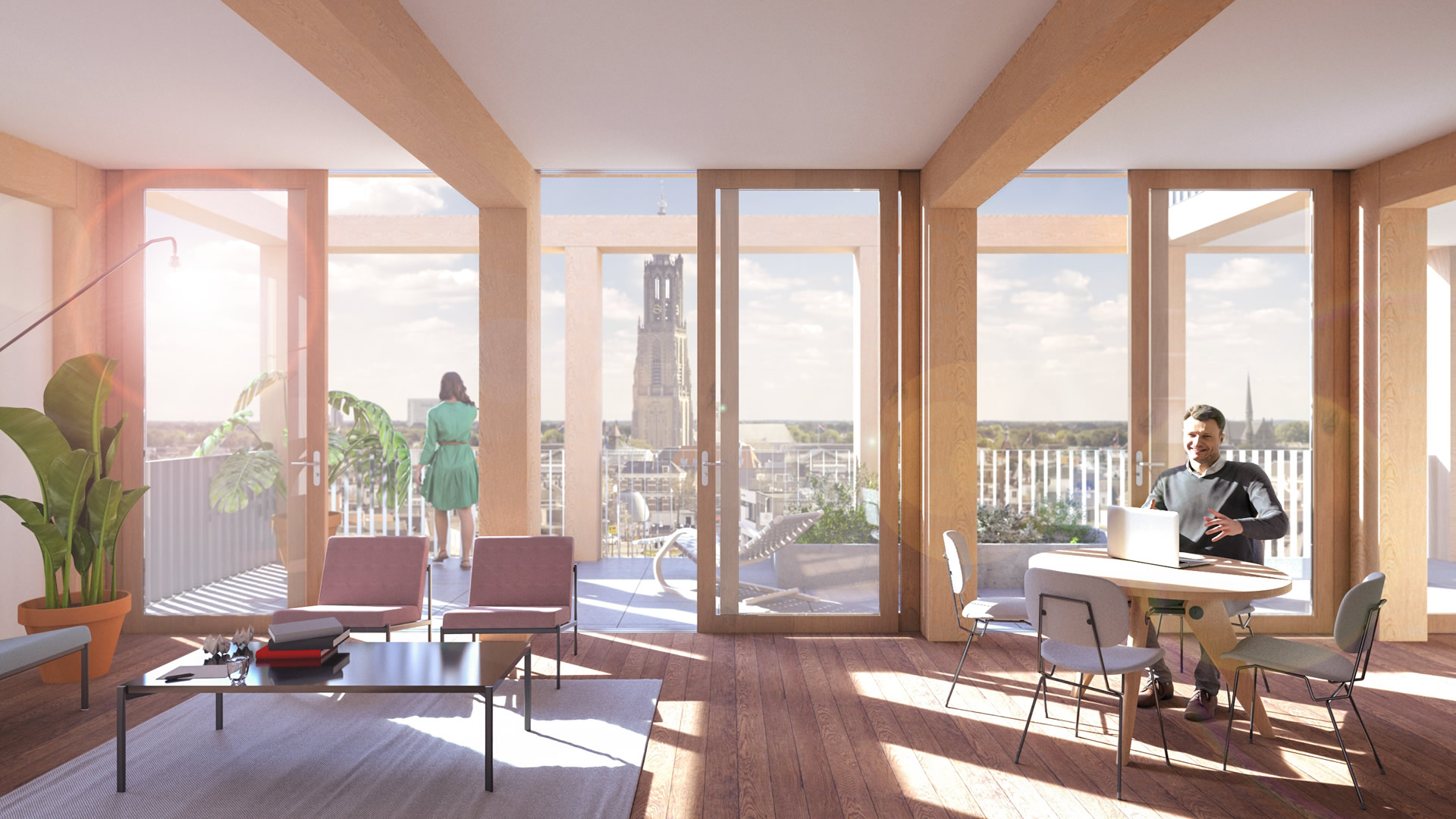 Naast een opbouw van 2 verdiepingen op de sportschool, is er op het achterterrein – naast gebouw Suncourt – plaats voor een slank torentje met daarin 11 appartementen. De laag gelegen appartementen hebben zicht op het binnenterrein, de hoger gelegen appartementen kijken over de bebouwing aan de Stadsring heen en hebben fantastische uitzicht op de Amersfoortse binnenstad.