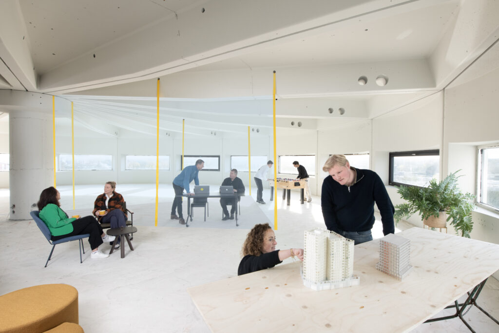 Naast werkplekken ontstaan er ruimtes voor ontmoeting, experiment en uitwisseling. Overdag wordt er gewerkt, later op de dag verschuift de energie naar gesprekken, events en samen iets eten op de 6e verdieping. Zo groeit Refläkt uit tot een levendig ecosysteem waarin ideeën verder komen en nieuwe verbindingen vanzelf ontstaan.