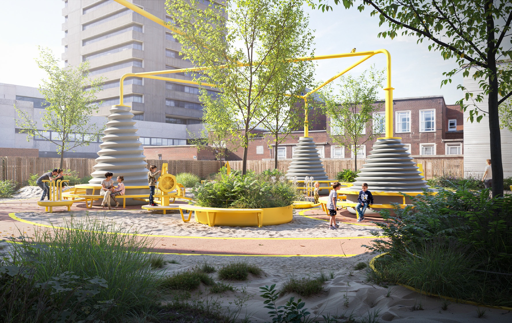 Het vasthouden en hergebruiken van regenwater speelt een steeds belangrijkere rol in de inrichting van steden en openbare ruimtes. Vanuit de ambitie om duurzaamheidsvraagstukken niet alleen te onderzoeken maar ook concreet en zichtbaar te maken is Raincafé ontstaan, een co-creatie van Cleantech Park Arnhem, ZUS en Studio Floris Schoonderbeek.